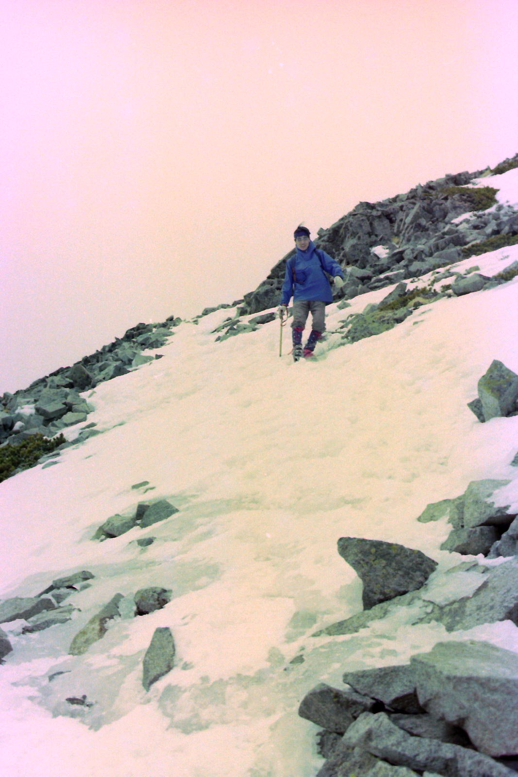 5月2日8:00pm北コンコースへ。「ちくま」の行列は、と見ると何んと中央コンコース。しかも二重三重の長蛇の列で松本まで立ちんぼうを覚悟したが大明神様の霊験で指定がとれたので勇躍列を離れて乗り込んだ。座席にはありついたものの結局眠れず、睡眠不足で危うくピッケルを忘れるところだった。