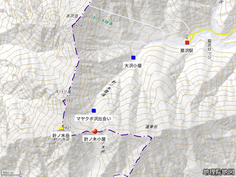 コースタイム 扇沢テントサイト745-扇沢駅755-830大沢小屋手前堰堤- 910/cont.1800m-1005/cont.2050m-1105マヤクボ沢出会い上部/cont.2400m- 1150針ノ木小屋(cont.2530m)1255-1400 堰堤-1420駐車場.