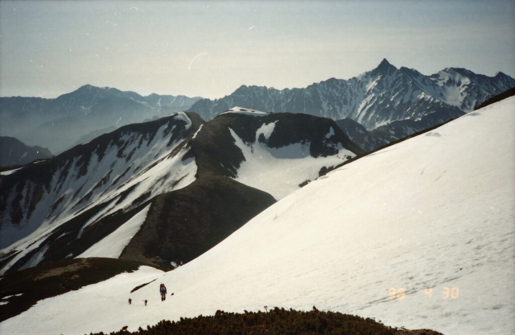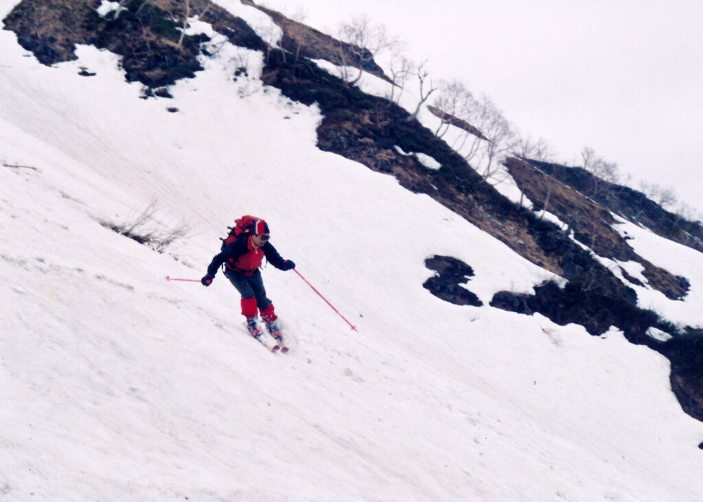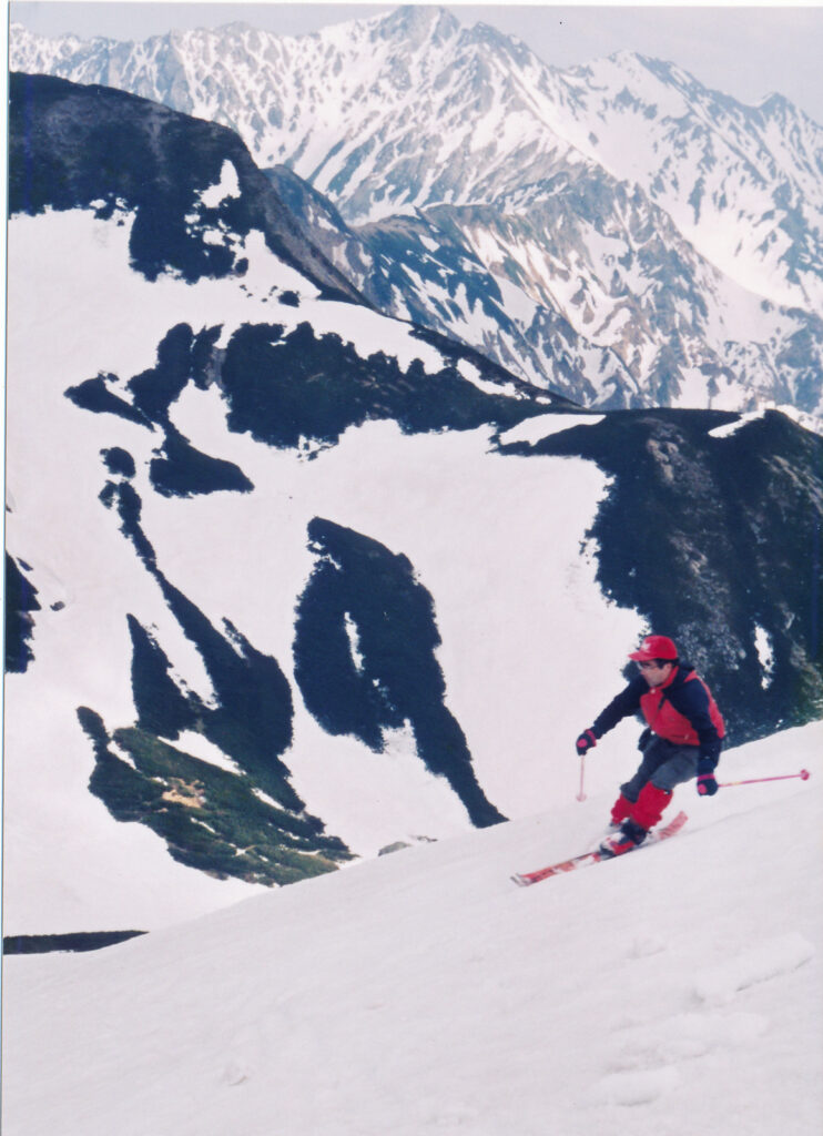 双六小屋に連泊するので今日はザックフリーで周辺でスキーを楽しむ.双六岳から槍ヶ岳を前に見ながら広大な斜面を滑降する醍醐味を味わう.天気に恵まれ滑降・登り返し4本を楽しむ.