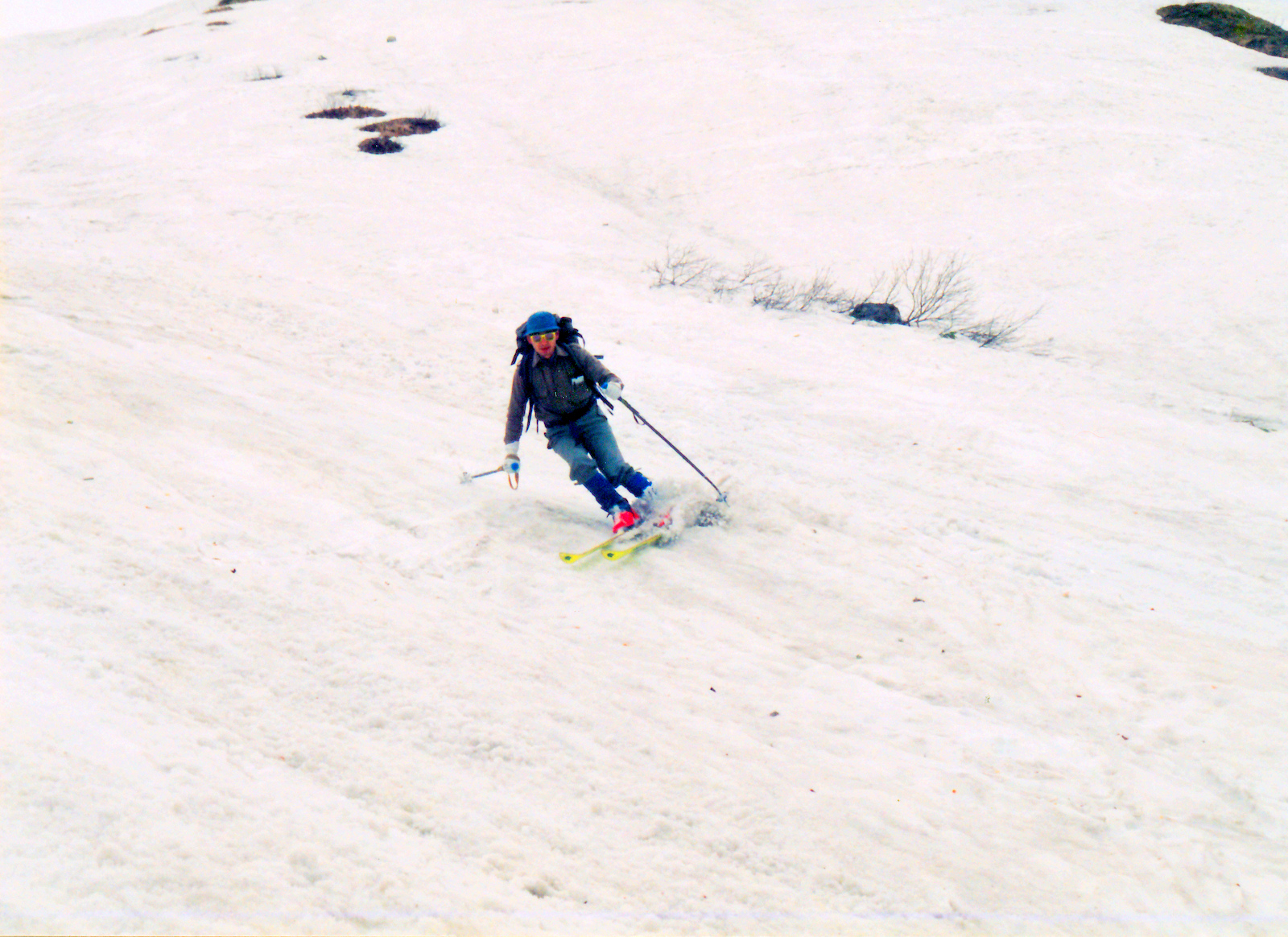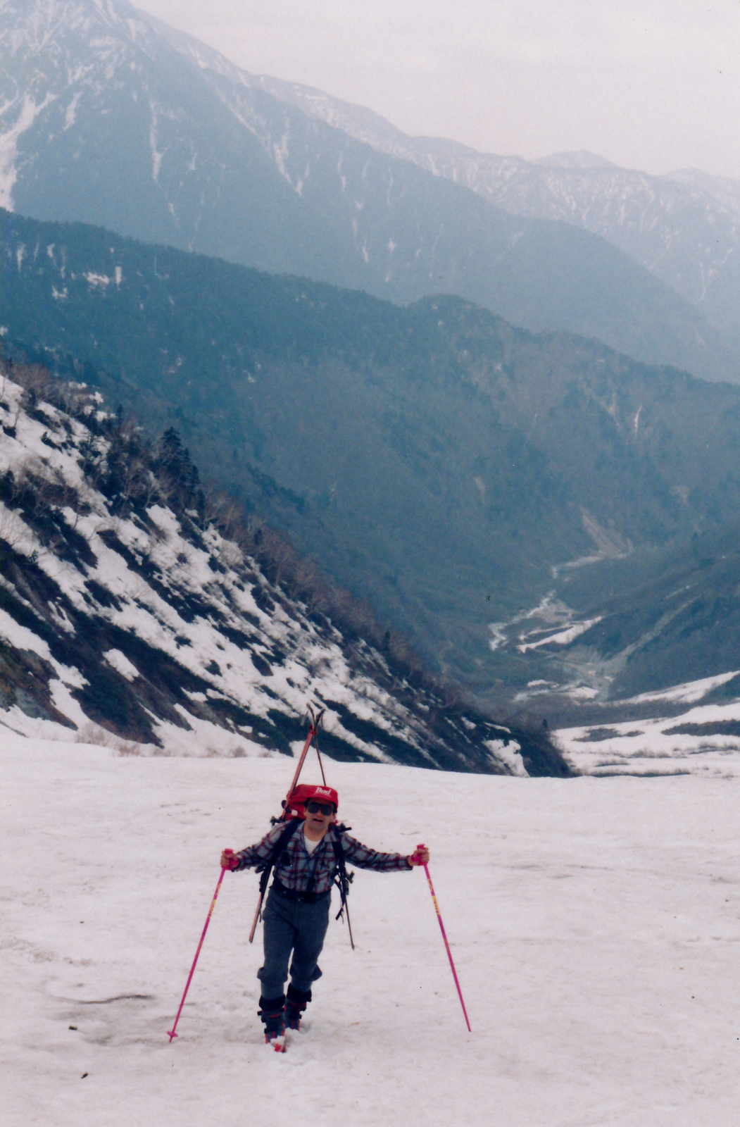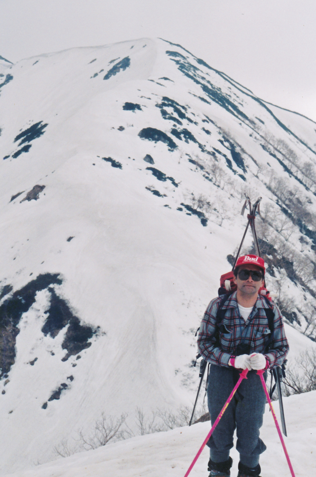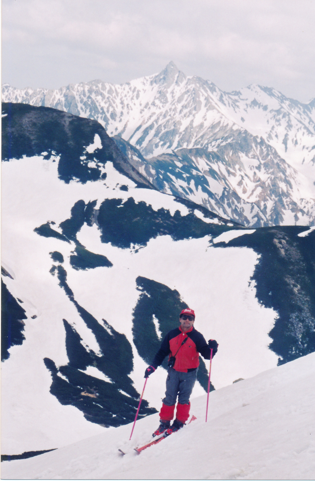 双六小屋に連泊するので今日はザックフリーで周辺でスキーを楽しむ.双六岳から槍ヶ岳を前に見ながら広大な斜面を滑降する醍醐味を味わう.天気に恵まれ滑降・登り返し4本を楽しむ.