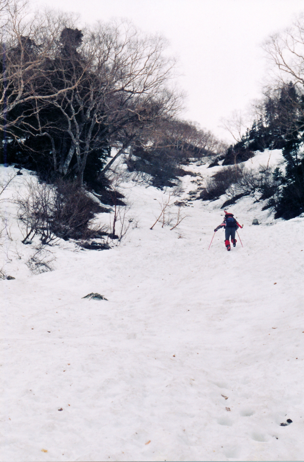 コースタイム:双六小屋7:05+++双六谷+++7:30大ノマ乗越取りつき点(cont.2250m) 7:50—8:48大ノマ乗越(cont.2450m) 9:20+++++10:20小池新道取りつき10:35—11:00ワサビ平小屋11:30—12:40新穂高駐車場.行動時間5時間35分.(+++はスキー滑降)