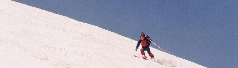 広大な斜面は八甲田でも一番醍醐味があるところだろう.谷地温泉の親父には迷いやすいとずいぶんおどかされる.山頂で朝方櫛ガ峰まで往復してきて,今日は2本目という元気な秋田の人に出会う.