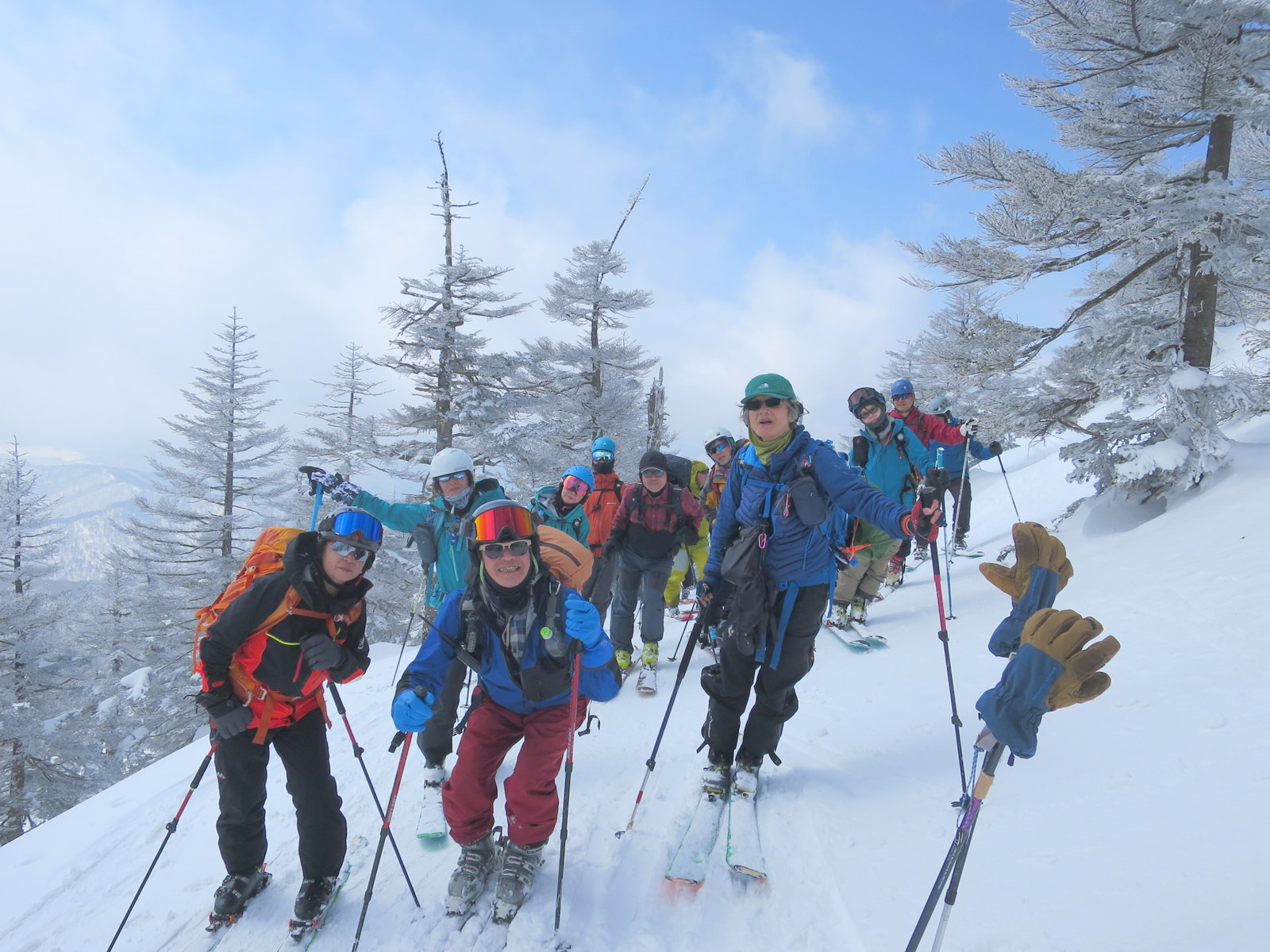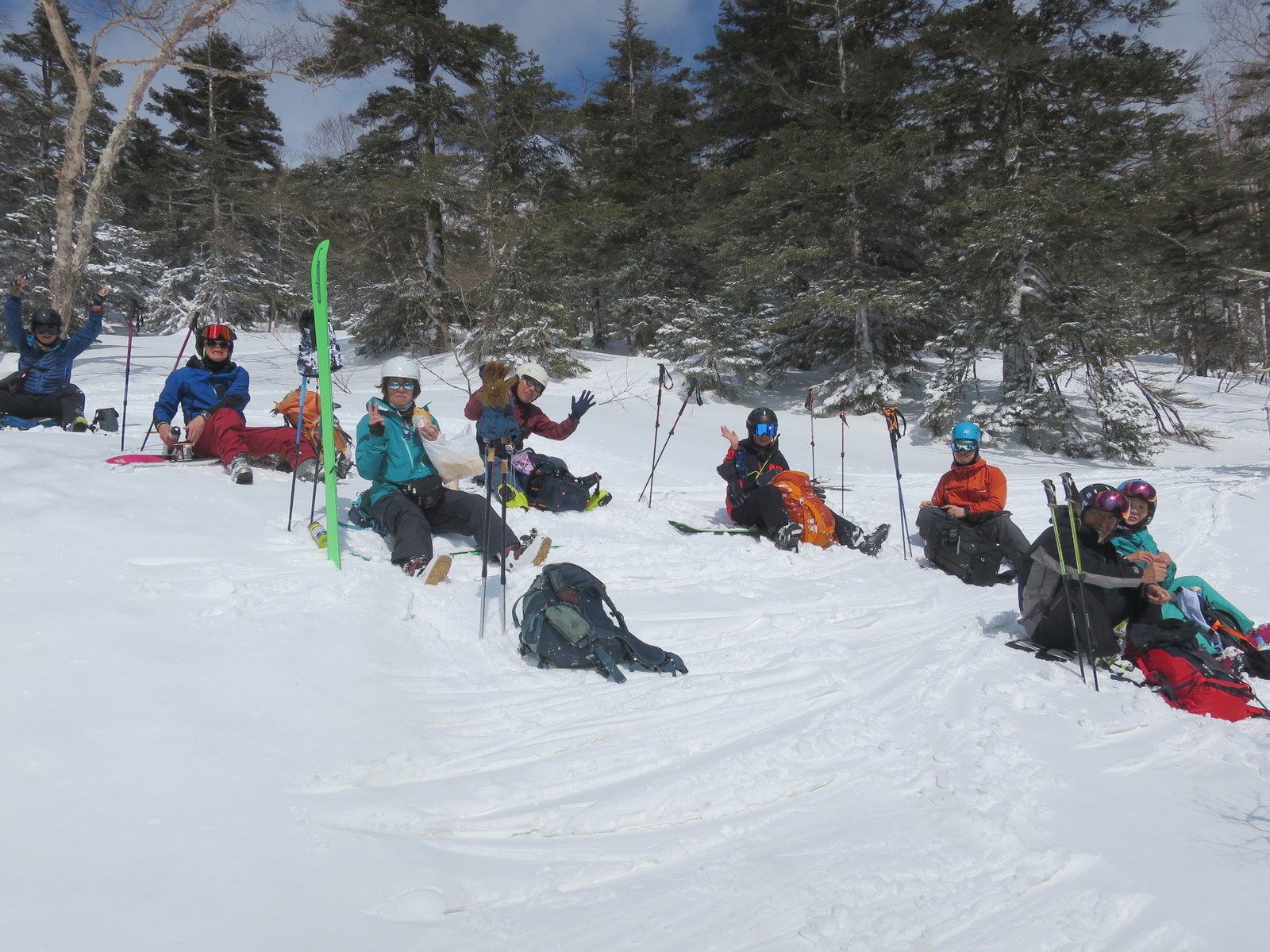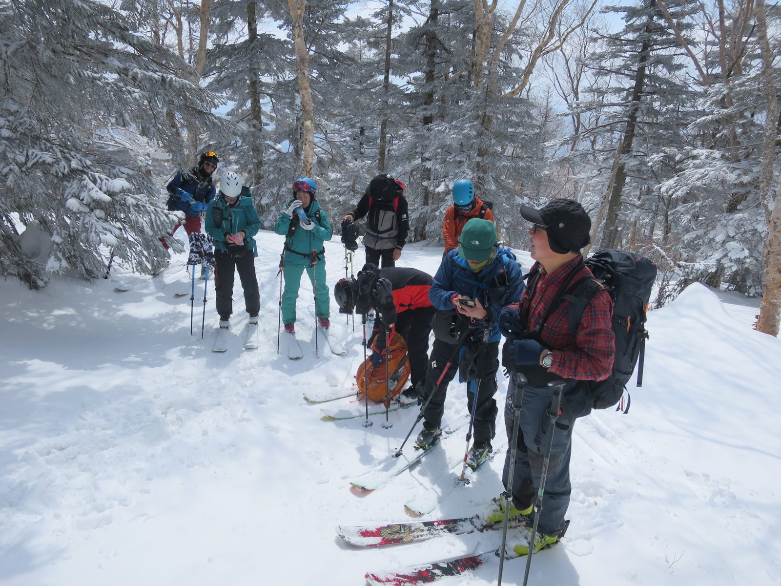 初日(3/21)は西大巓・西吾妻山を経由して二十日平に滑り下りる予定であったが西大巓の手前の手ごわい雪と急斜面に阻まれ多人数の行動でもあり1860m地点で引き返すことになった.雪質はまあまあで固い雪の上に昨日の新雪が乗って気持ちの良い滑降を楽しむことができた.翌日は雄国沼~雄国山のコースが予定されたが参加せず朝一番で帰路についた.