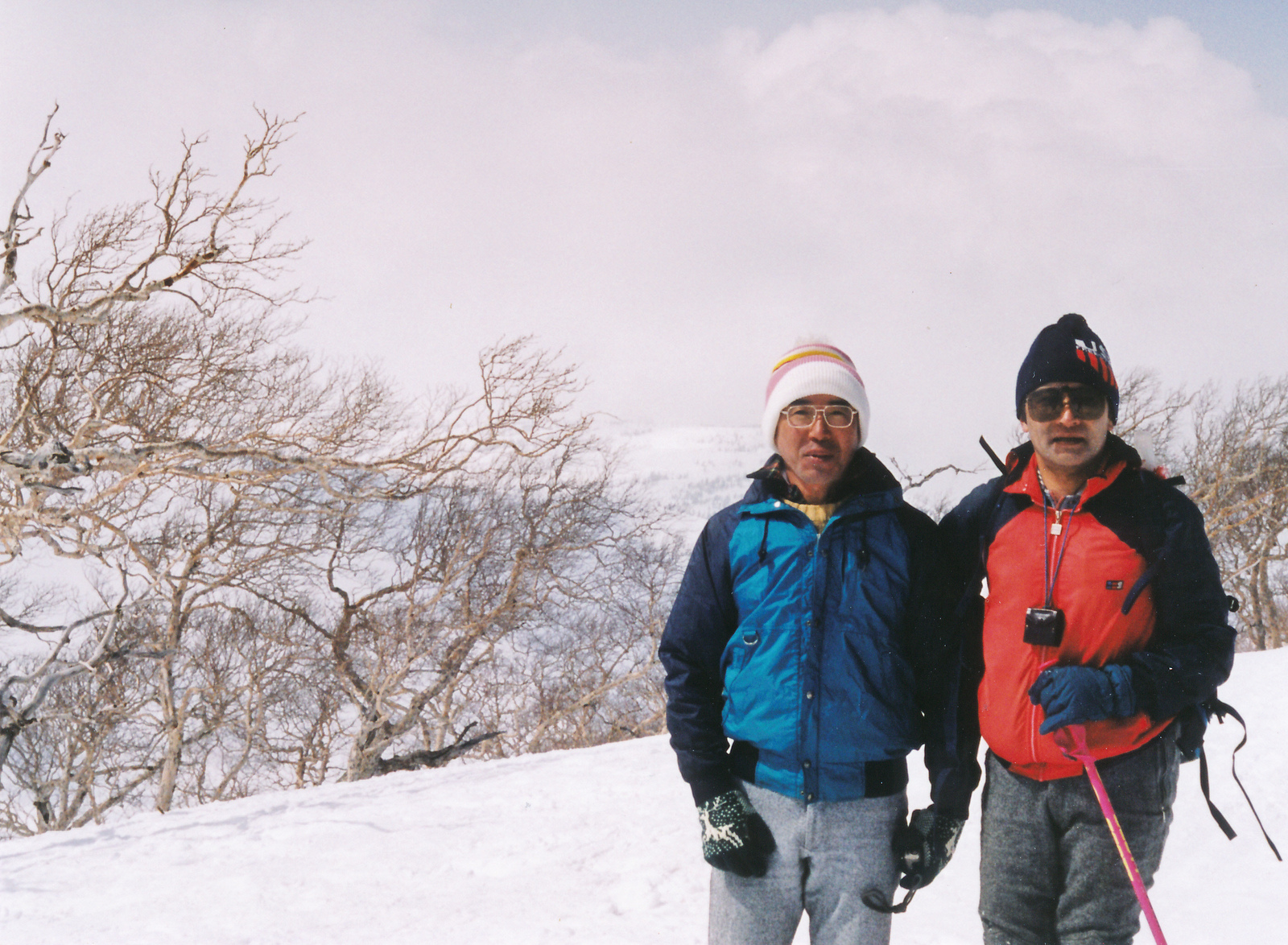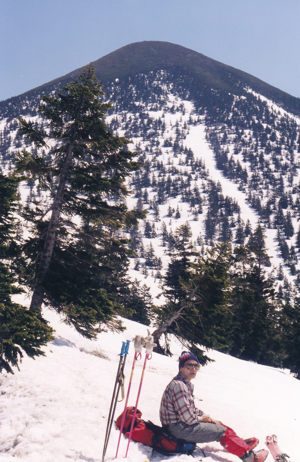 山頂付近はエビのシッポがたくさんついた雪の塊がそこらじゅうにある.ビールをいっぱい飲んで休んだ後で新山に登る.日本海の海岸線がよく見える.下山するころには太陽にかさがかぶるようになる.天気は下り坂である.