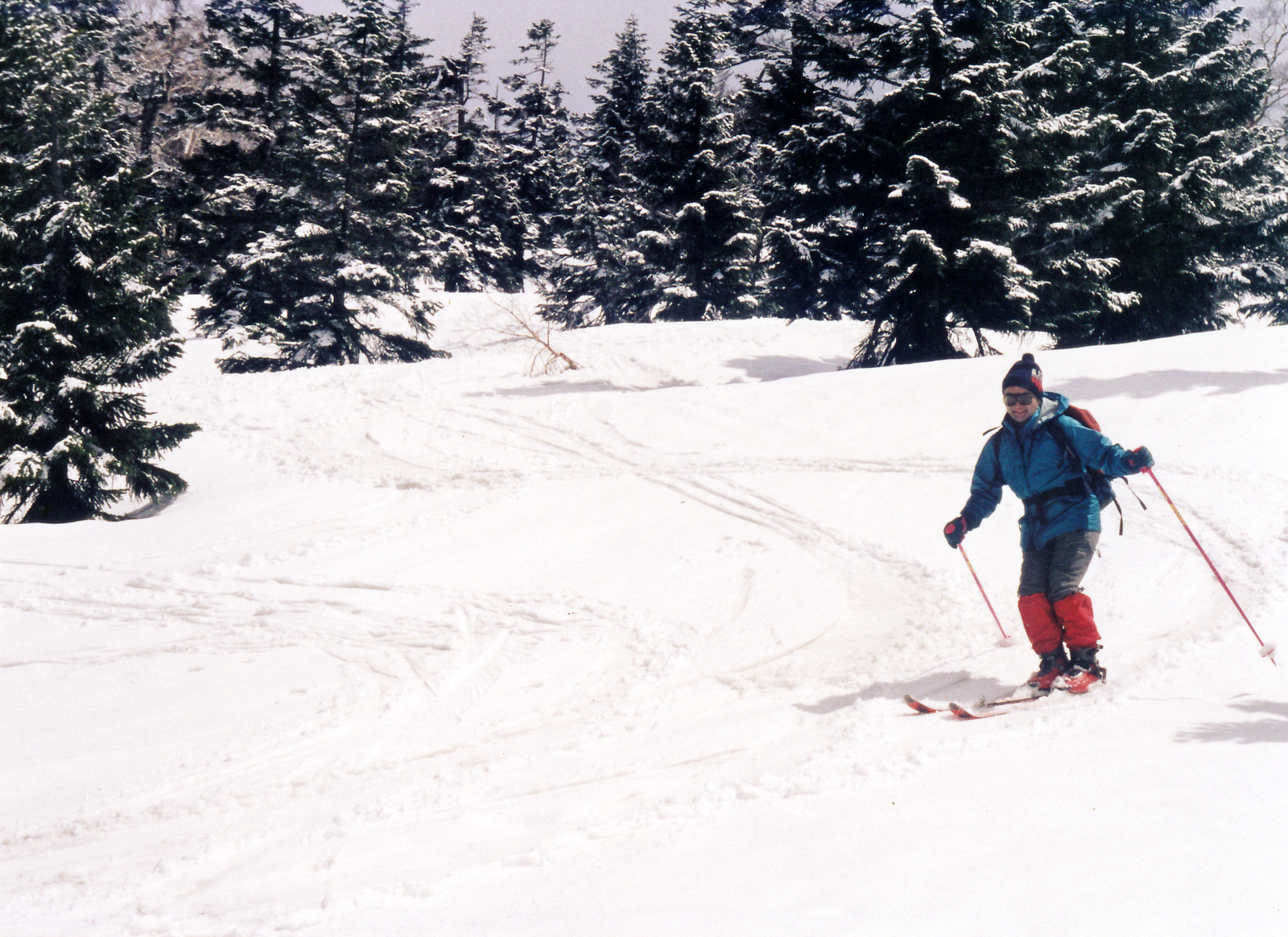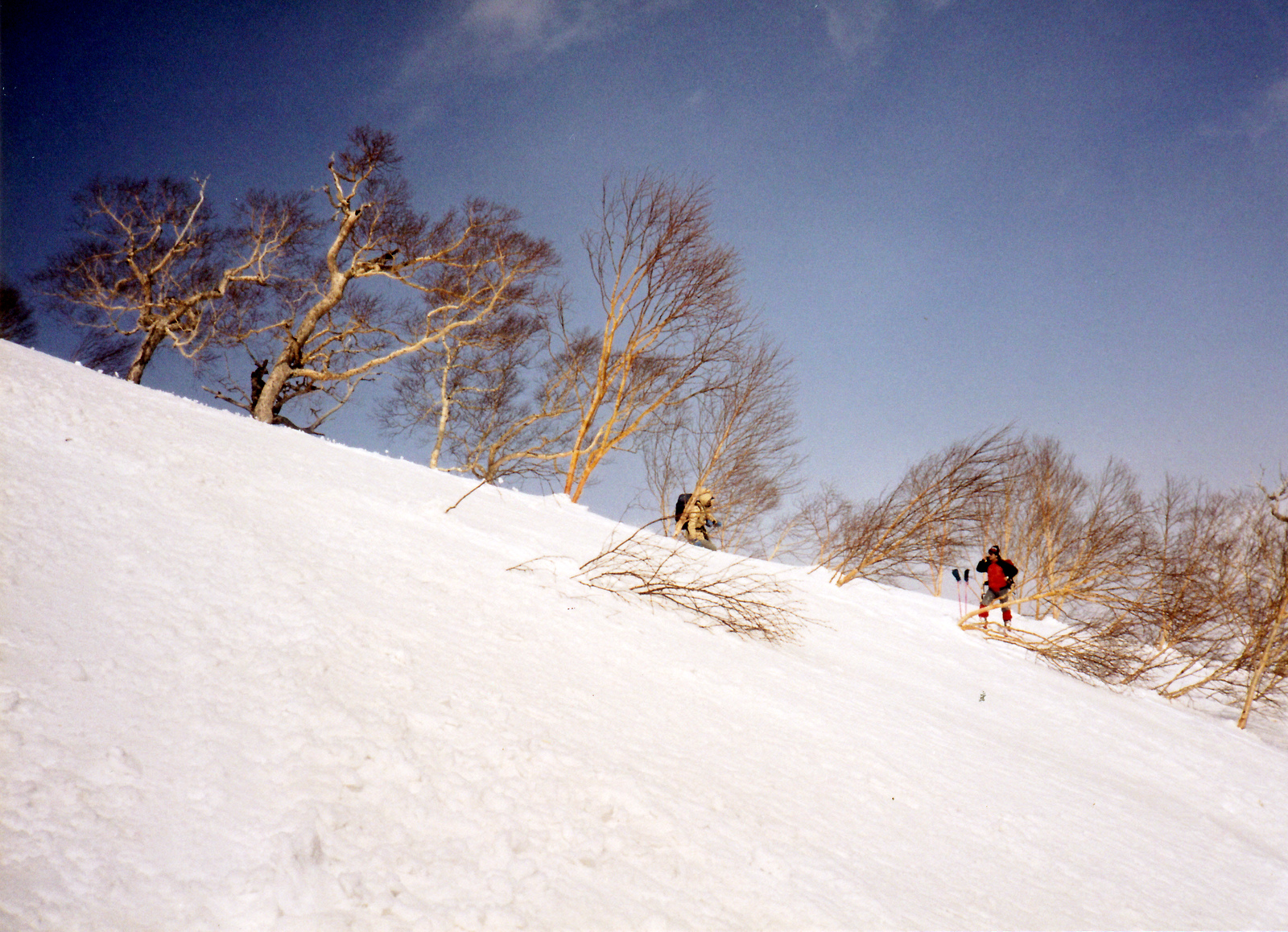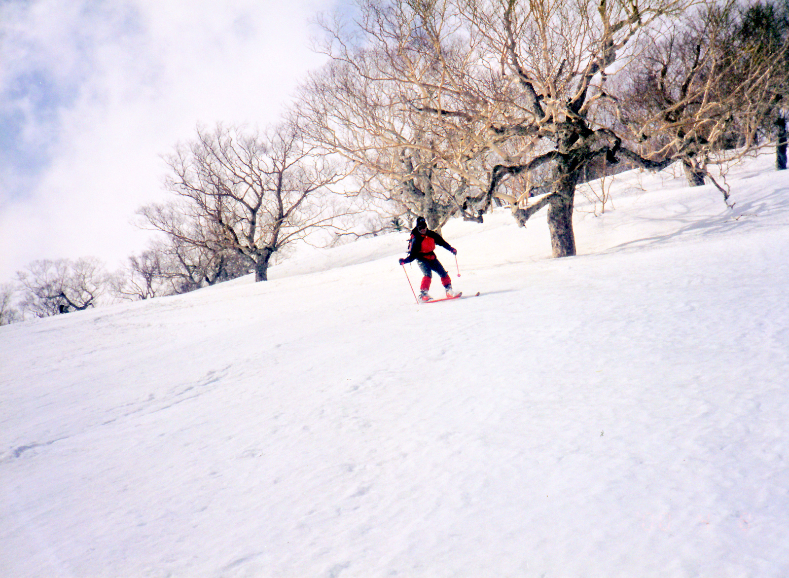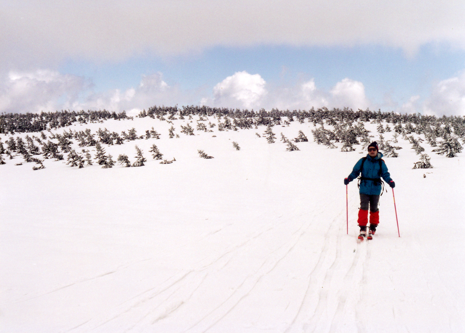 案内板がたくさんあり親切だが,視界が悪いときにはちょっとやっかいなコースだ.山頂付近はスキーが滑らないがだんだんと斜度が大きくなる.山毛森への取りつき点が分かりにくかったが蒸ノ湯分岐付近ですぐに取りつくのがいいようだ.