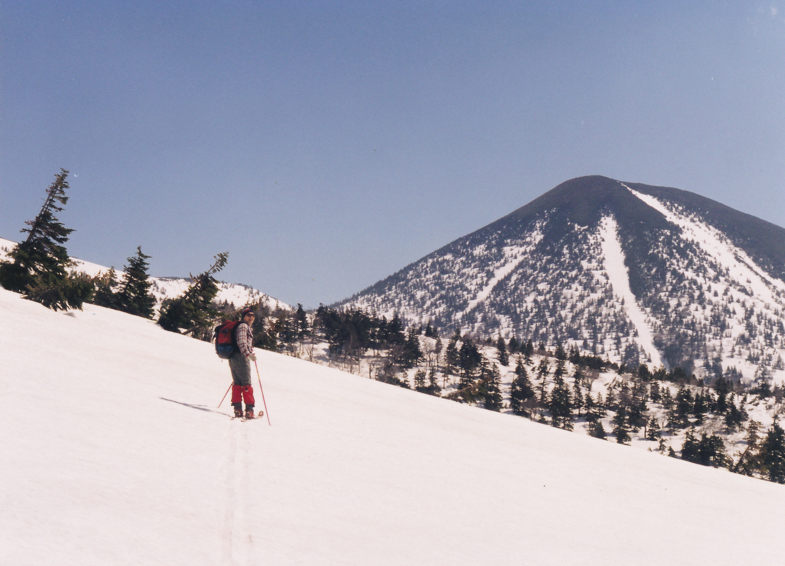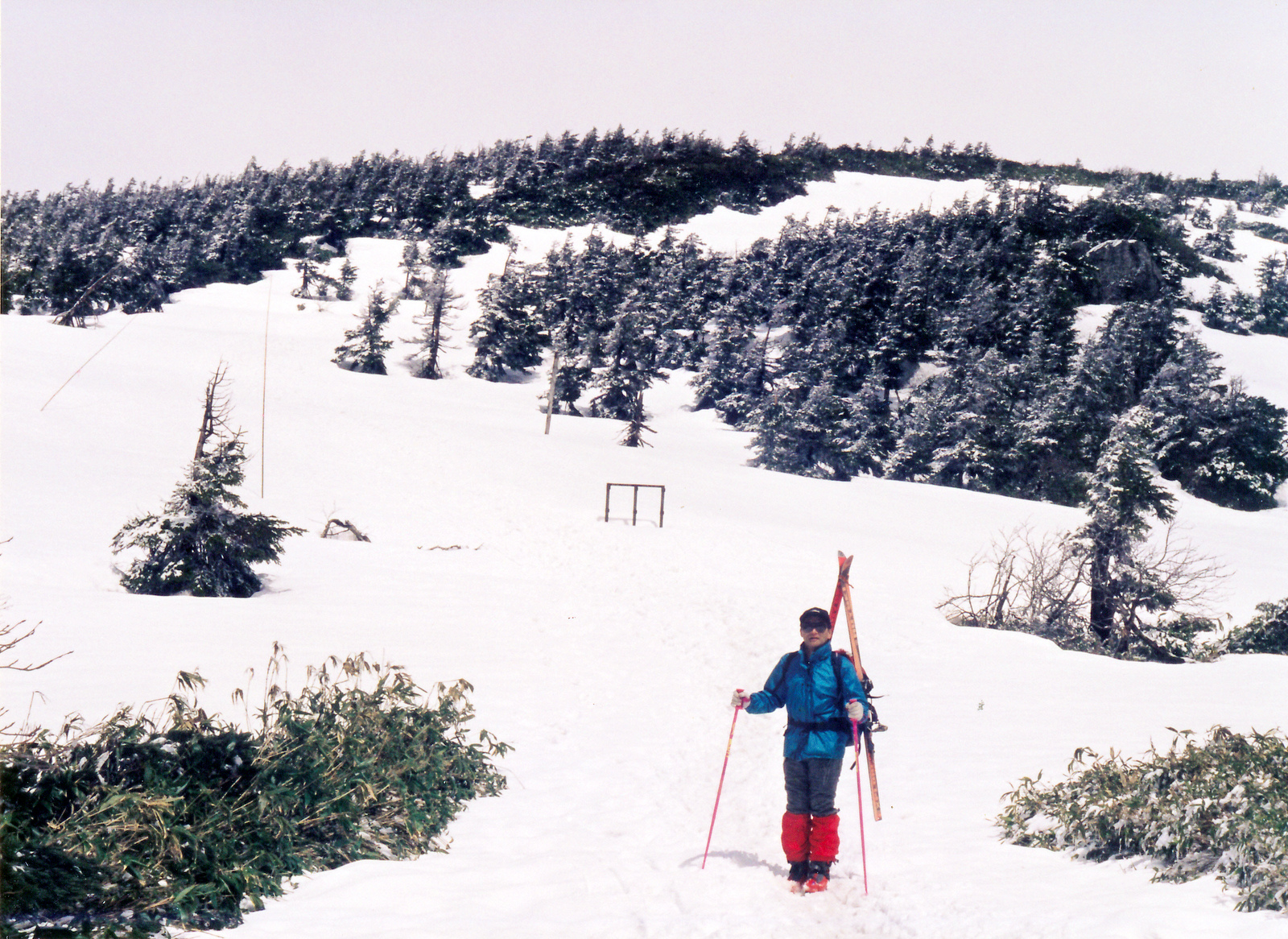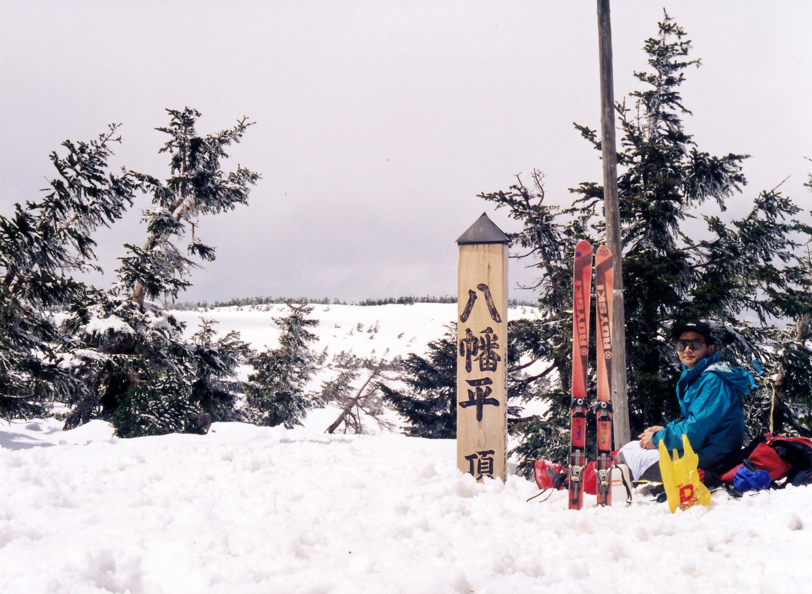 広大な斜面は八甲田でも一番醍醐味があるところだろう.谷地温泉の親父には迷いやすいとずいぶんおどかされる.山頂で朝方櫛ガ峰まで往復してきて,今日は2本目という元気な秋田の人に出会う.