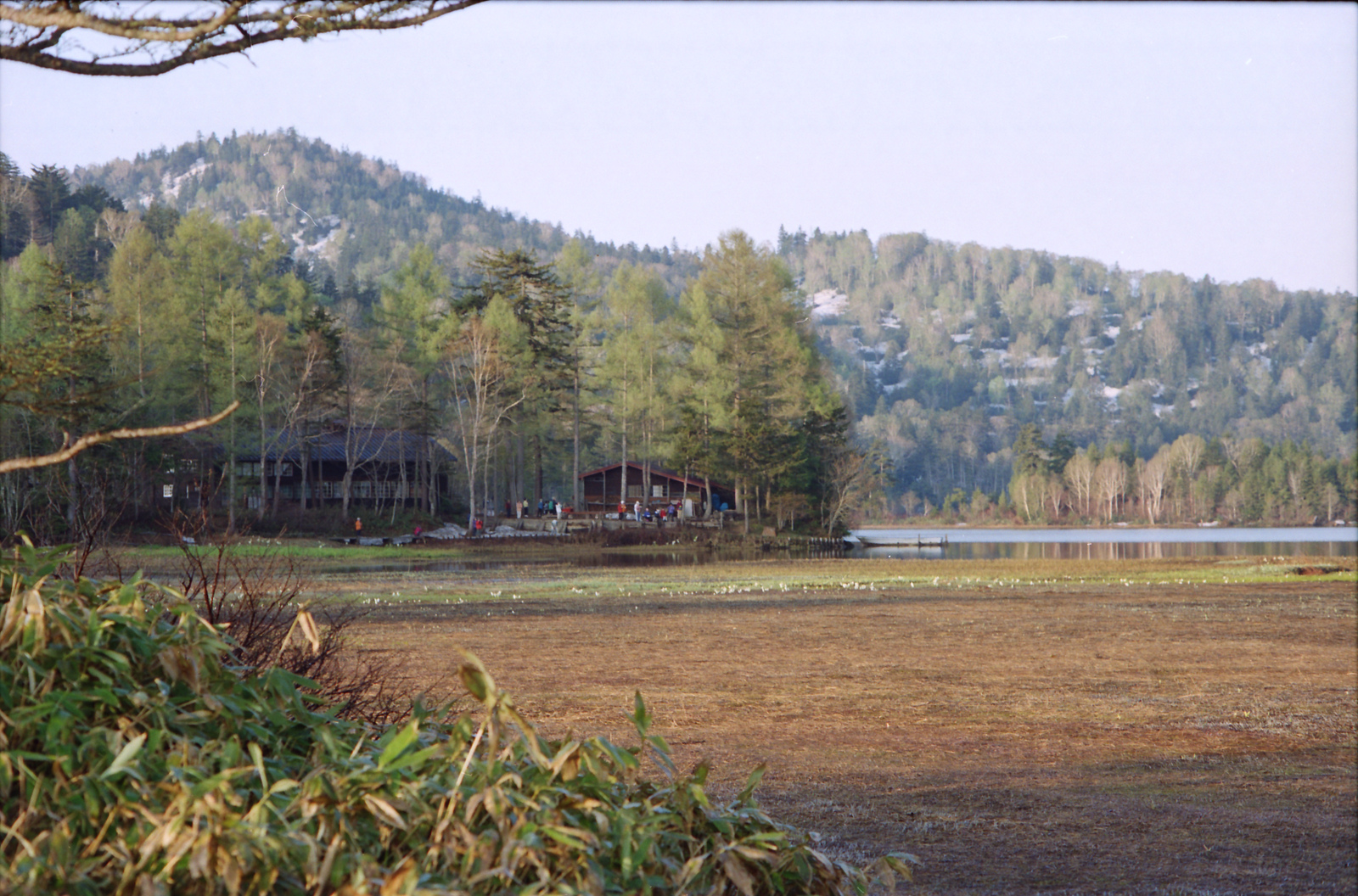 御池駐車場は1回¥1000の自動改札式になっていた.沼山峠への道はシャトルバスと限定されたバス以外は通行禁止となっている.平日でも50歳前後の中高年の人と乗せたツアー群がどっと押し寄せる.三平下から沼尻へのルートはこの時期は雪が多くアップダウンも多いので歩きにくい.燧ヶ岳の山麓を進む道は雪もなく歩きやすい.夕方と早朝に沼に映る燧ヶ岳の姿はまた格別である.奈良/薬師寺からこられた70すぎの老夫婦と合部屋となる.