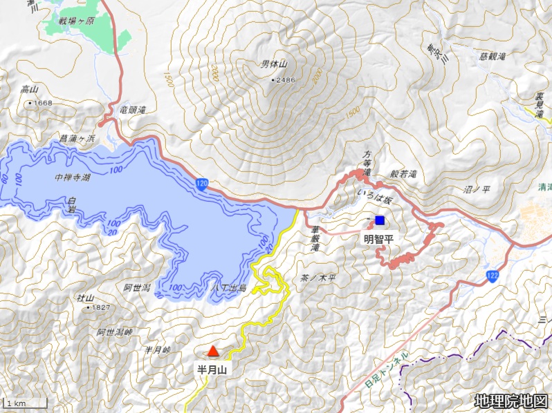 コースタイム 横浜0455===明智平0855—0948展望台—1023細尾峠分岐手前展望台—1105スカイライン直上展望台—1138狸山—1226半月山1305—1335半月山駐車場—1400出発.